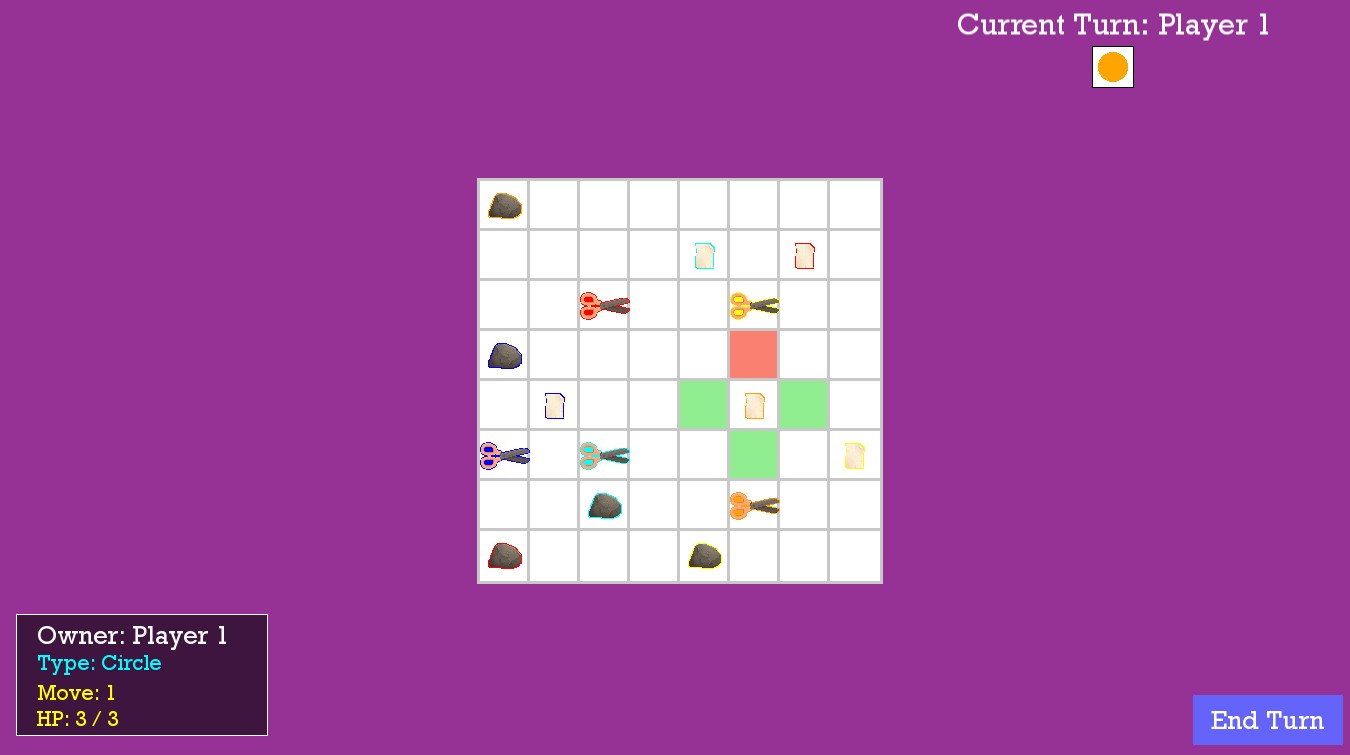 Tri-Tactical is a strategy game that uses the classic Rock-Paper-Scissors mechanic onto a grid-based arena. Players leads soldiers consisting of three unit types with the goal of eliminating opponents by converting their units to own side.